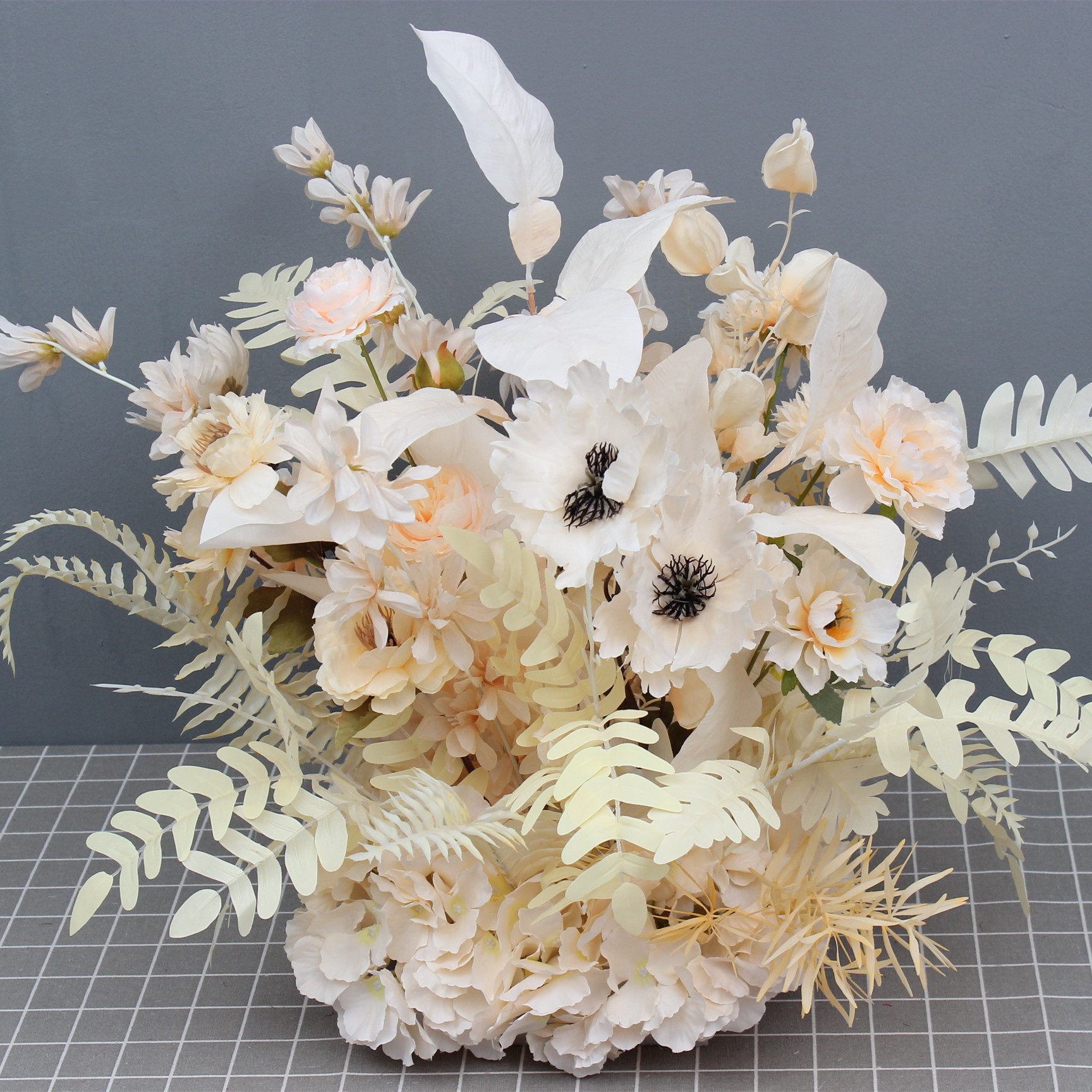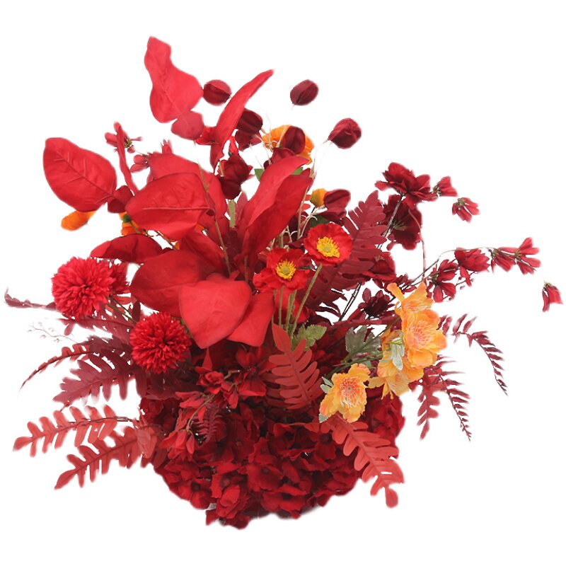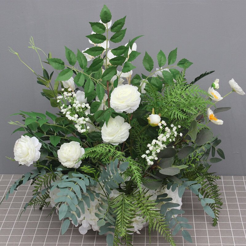 Wedding Celebration Road Leading Row Flowers Large Grapefruit Leaf Silk Cloth Basin Flowers Foggy Blue Sen Ensemble Wedding Hall Hotel Stage Decoration Flowers