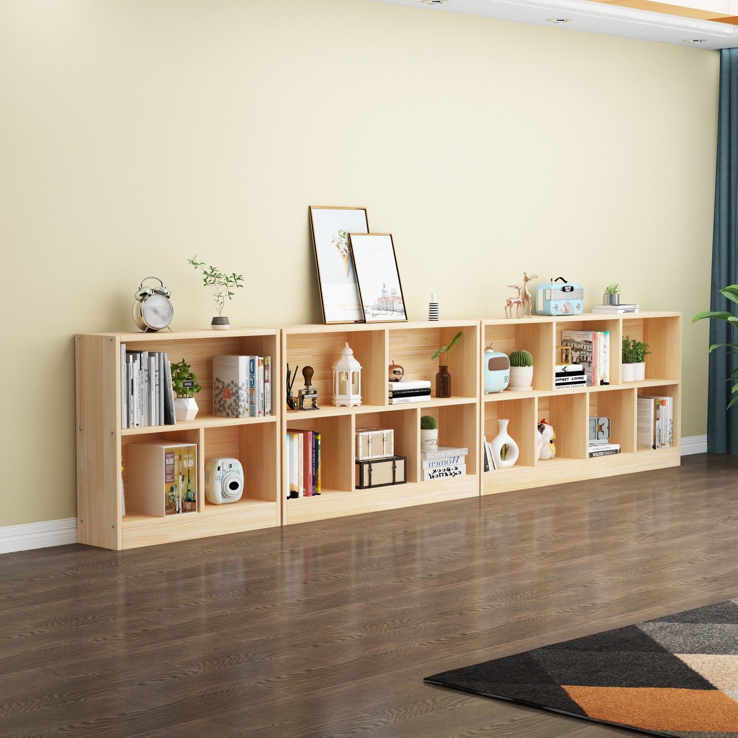 Children's bookcase floor solid wood combination pine bookcase storage cabinet lattice cabinet picture book rack activity room toy cabinet