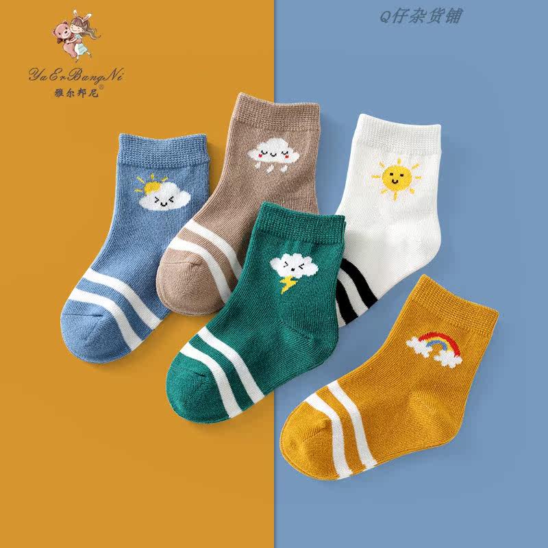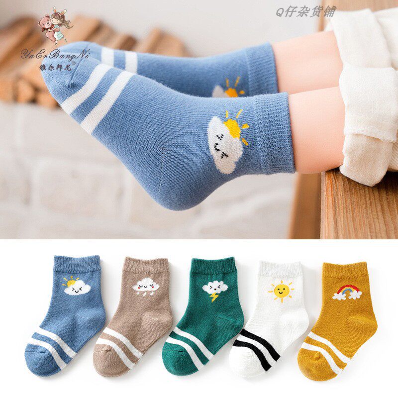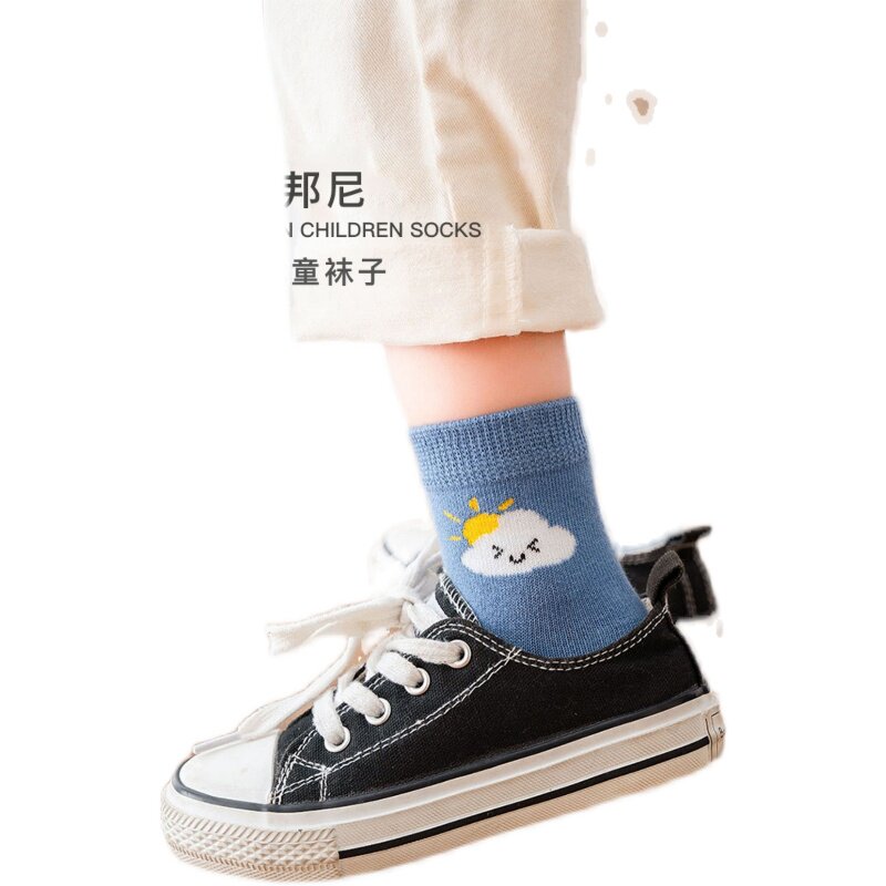 Children Socks Pure Cotton Autumn Winter Middle Cylinder Socks Japan-Japan Cartoon Weather Group Cute Boy Girl Baby Socks 5 Double Dress