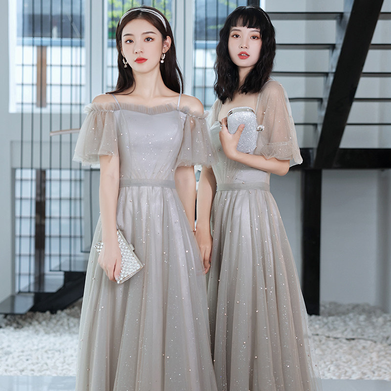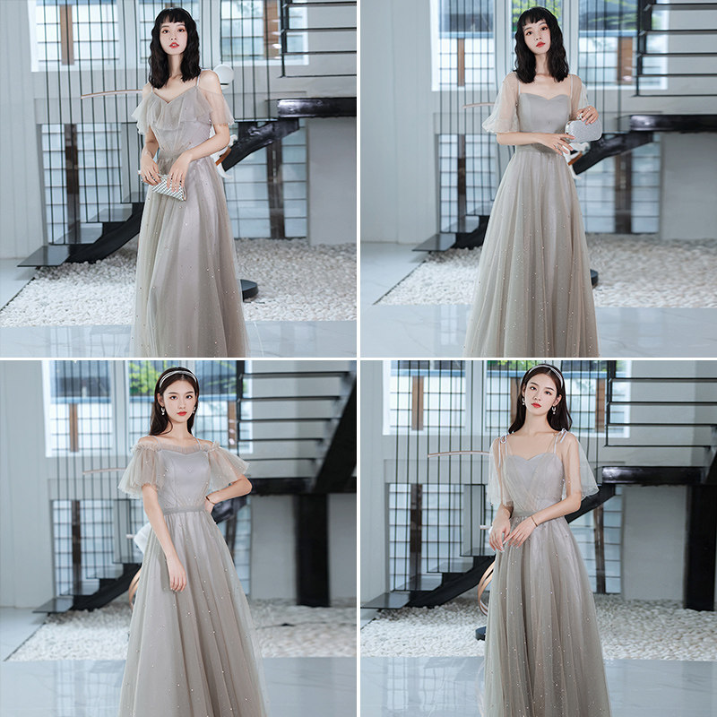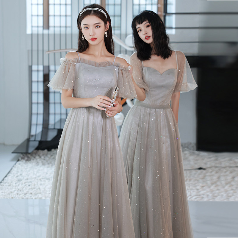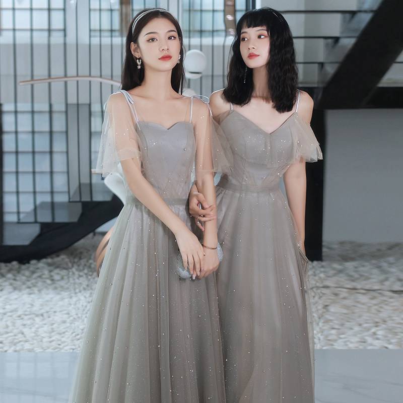 Grey bridesmaids 2022 new small crowns can be worn with sister group little sub advanced senses evening gown summer