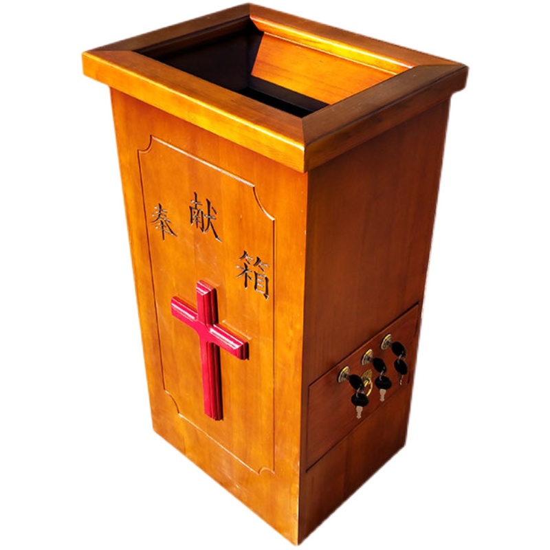 New Solid Wood Church Church Midsize Dedication Box Donation Box Opinion Box Height 70cm Three keys to lock 6 keys