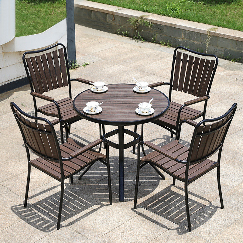 Outdoor Plastic Wood Table And Chairs Courtyard Casual Waterproof Sunscreen Outdoor Villa Garden Balcony Cafe Outside