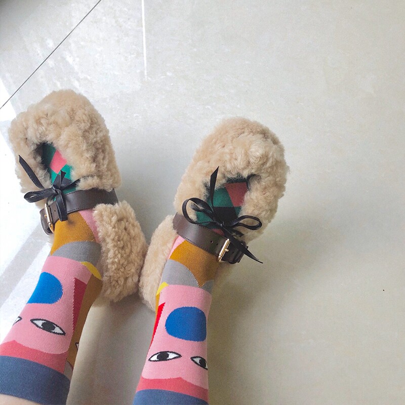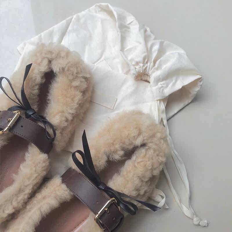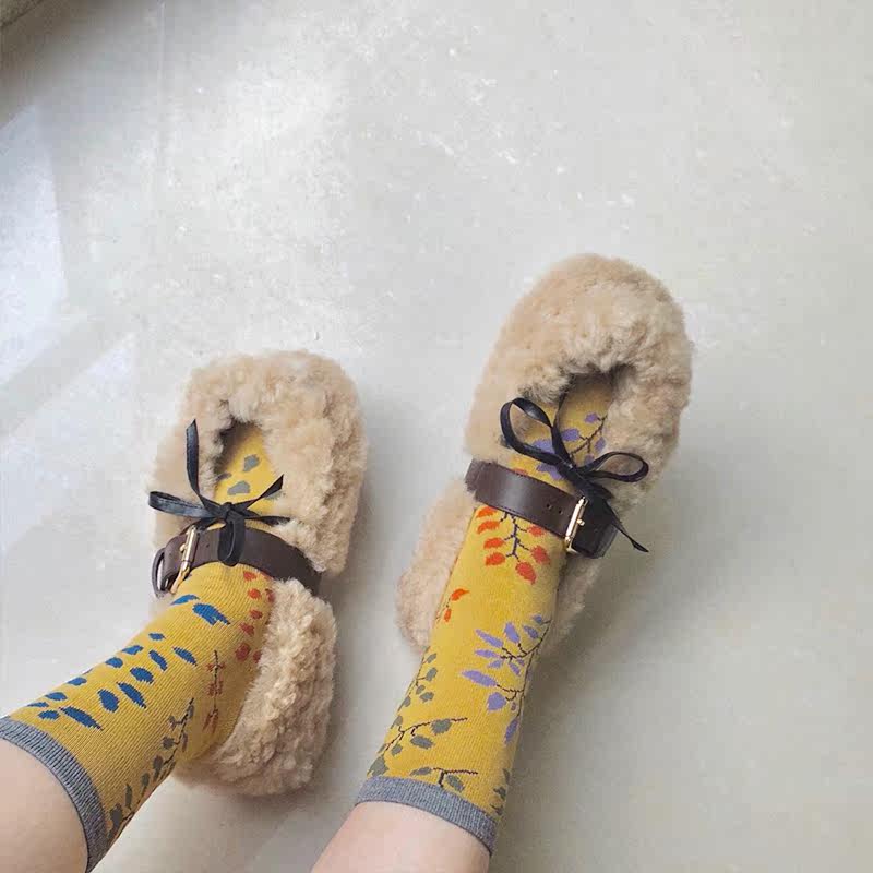 Lamb wool single shoes net red same style good-looking 2021 new buckle flat bottom wool shoes women's outerwear