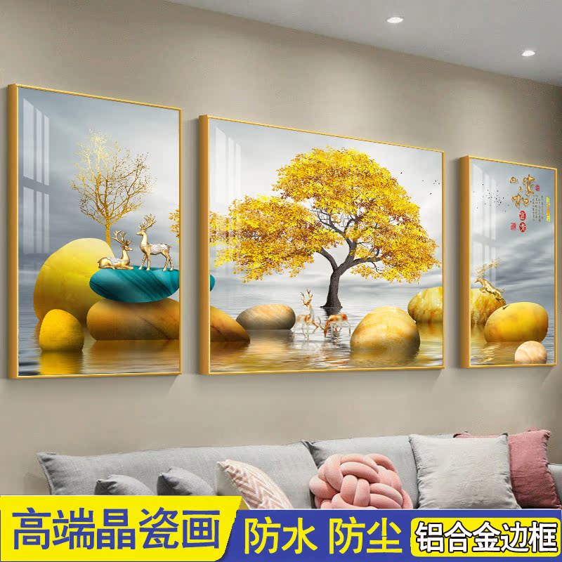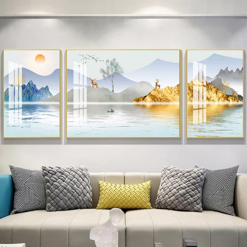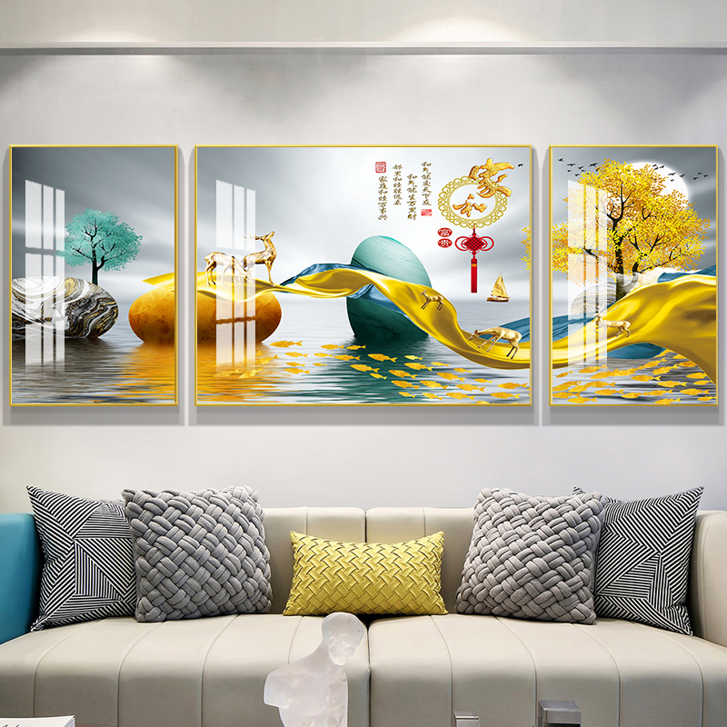 Sofa Background Wall Hanging Painting Modern Minimalist Atmosphere Living-room Decoration Painting Nordic Light Extravagant Crystal Porcelain Triptych Mural Painting