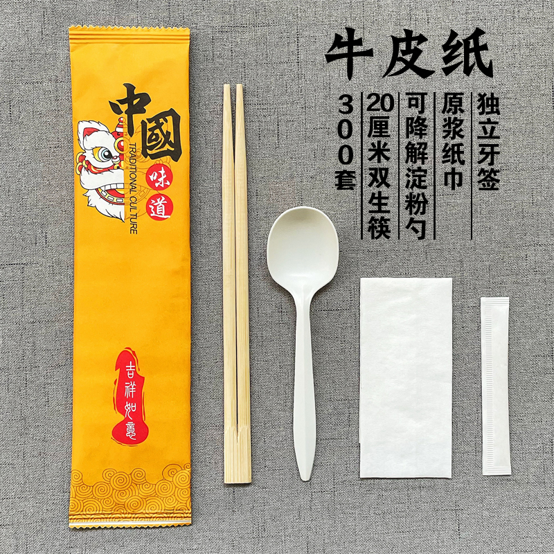 Disposable chopsticks four-piece high-end set degradable spoon tableware delivery commercial packaged fast food customization