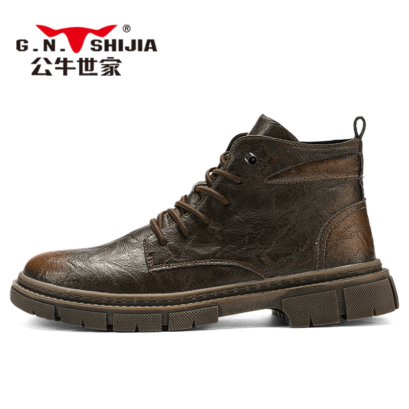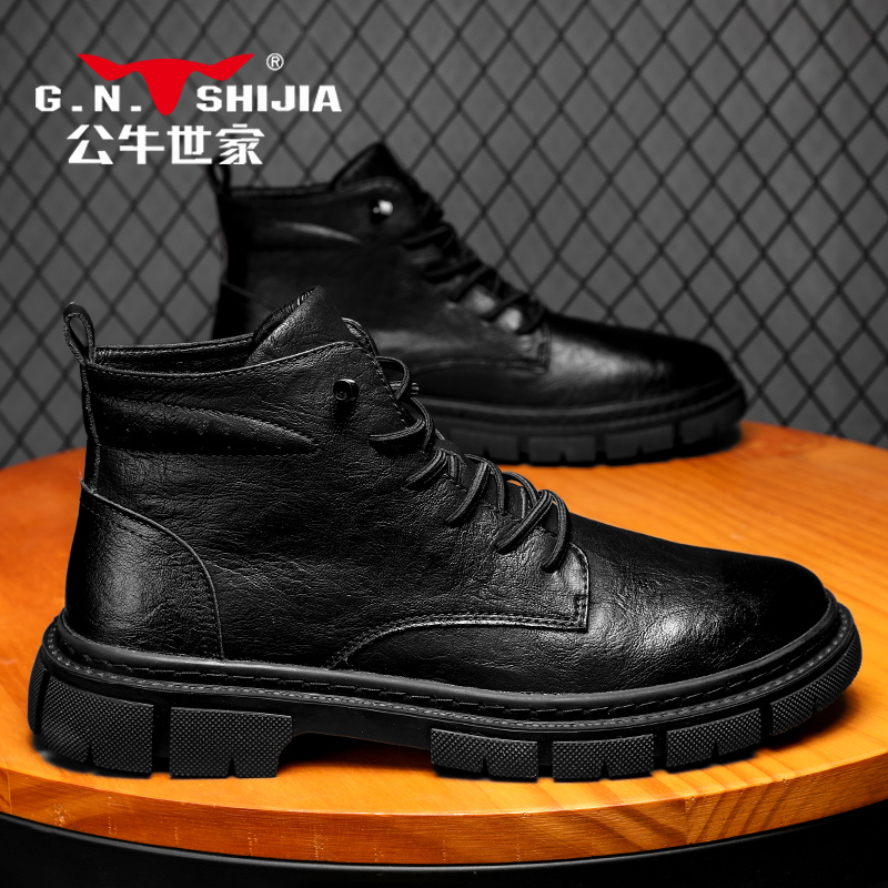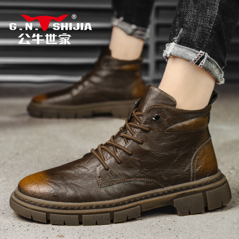 Bull World House Men's Shoes Spring Autumn Money Martin Boot Men's high cylinder Inron retro tooling Short boot Silo Genuine Leather Leather Shoes