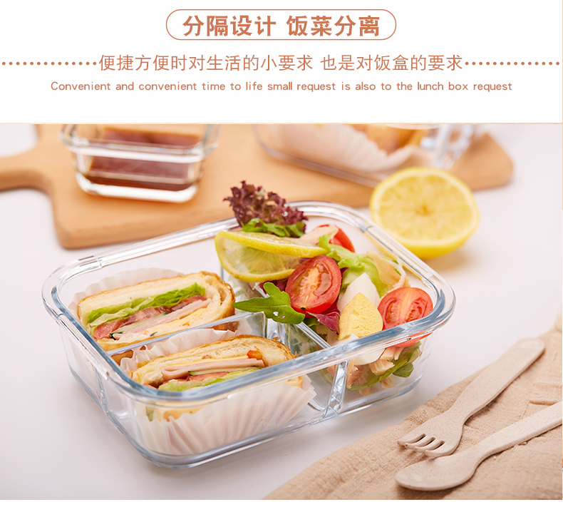 With Meal Kit Box Office Worker Glass Separation Lunch Box Female Microwave Oven Heating Special Bowl With Lid Sealed Lunch Box