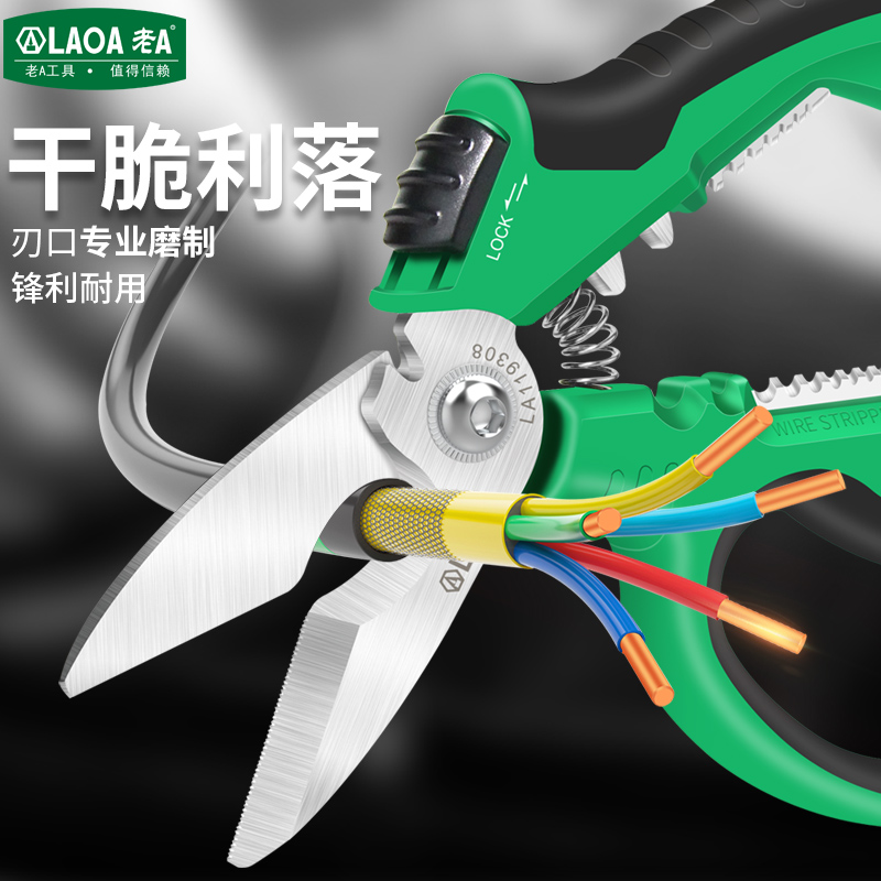 China Taiwan old A stainless steel heavy multifunction electrician scissor cable cut multipurpose cut and exfoliating wire LA119308