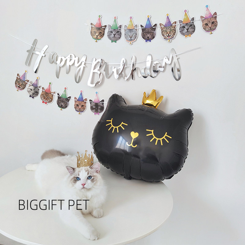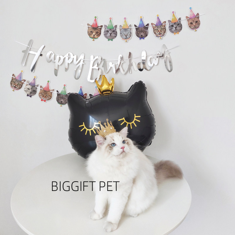 BIGGIFT ~ ins Crown kitty birthday scene placement Balloon Party Decoration Background Pull Flags Photo Props-Taobao