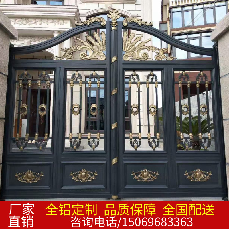 Villa Gate Aluminum Alloy Courtyard Door High-end Atmosphere Double Switch Countryside Yard Wall Cast Aluminum Electric Aluminum Art Gate