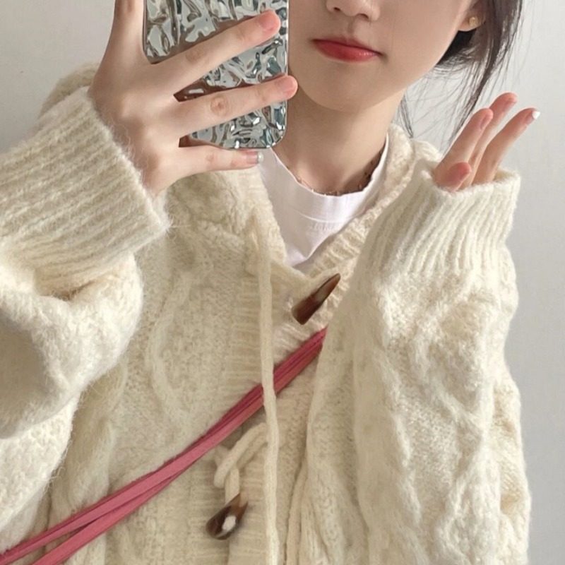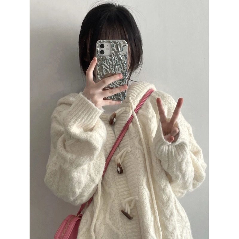 Hooded sweater coat women's small autumn and winter white twist Japanese style lazy Korean style gentle knitted cardigan top