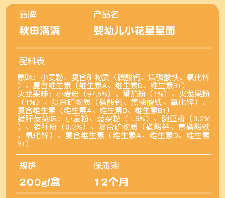 (June) Fortified Iron Grain Noodles 160g8 bags (June) Fortified Iron Fruit and Vegetable Star Noodles 160g8