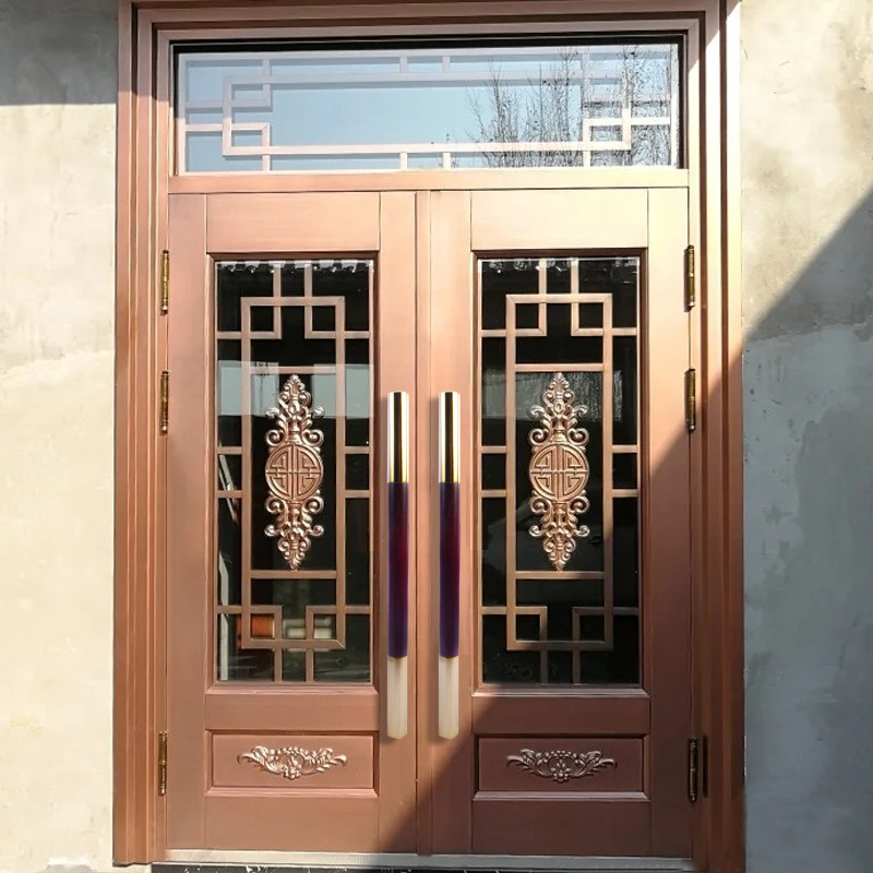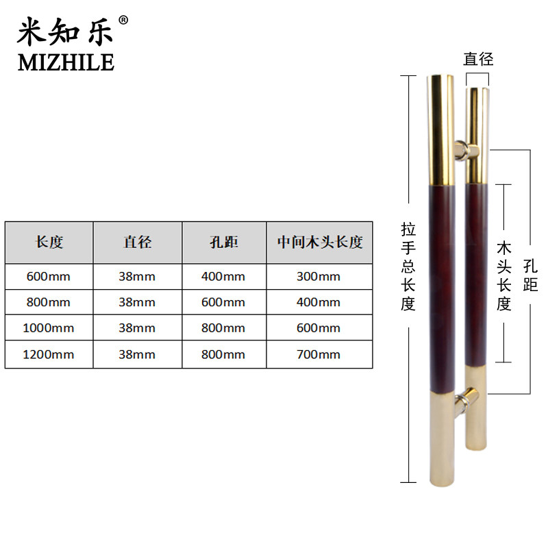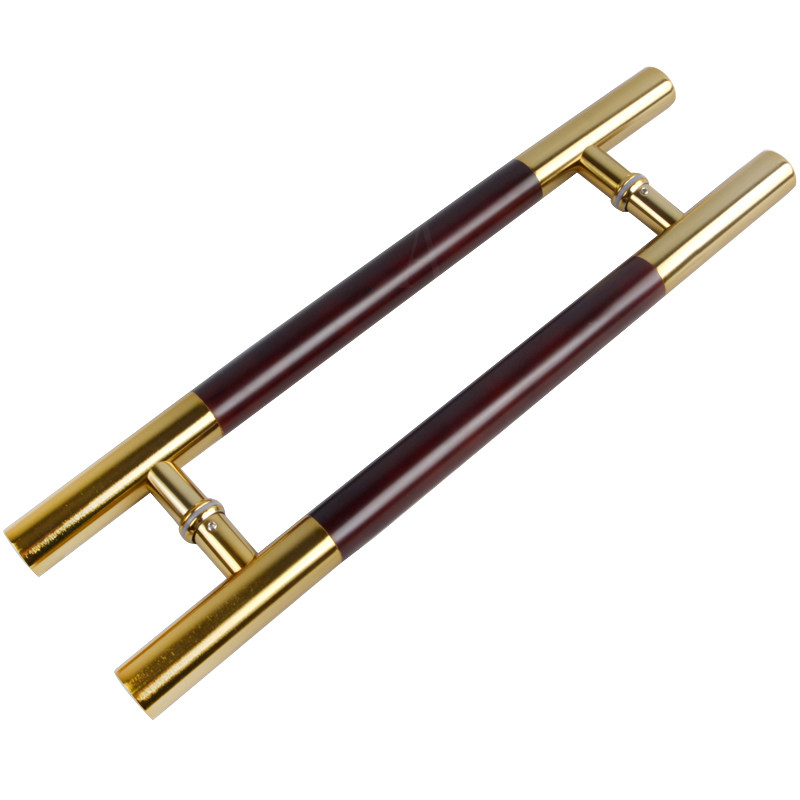 Chinese-style thickened stainless steel glass door handle log Chinese-style push-pull solid wood round tube handle wooden pair of ground bombs