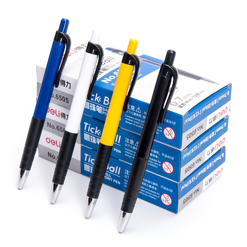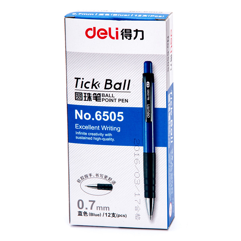 Powerful stationery 6505 pressed ballpoint pen ball ball pen medium thick 0 7mm blue refill plastic