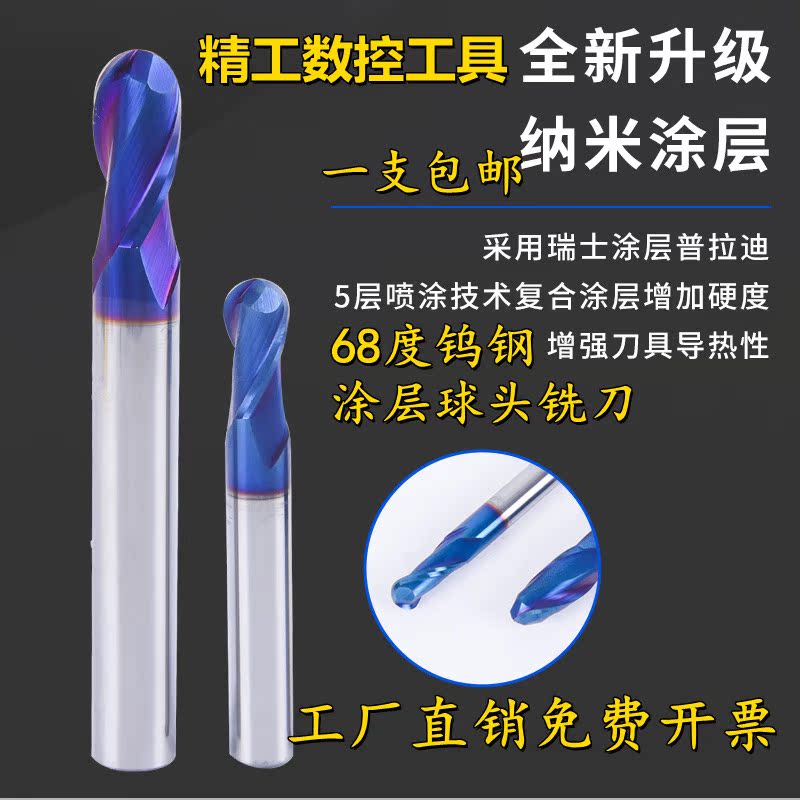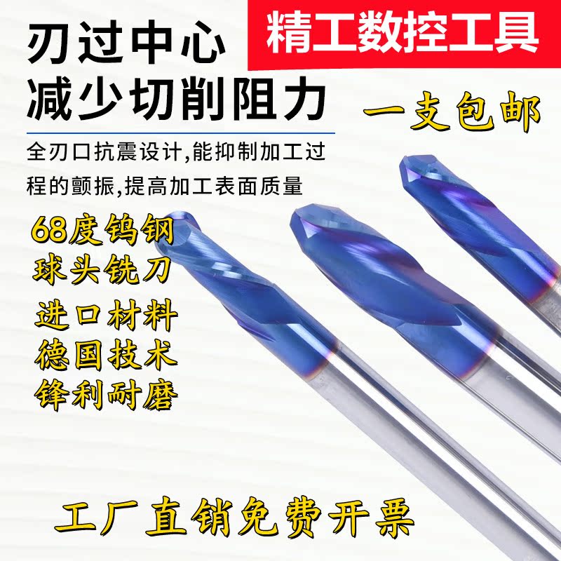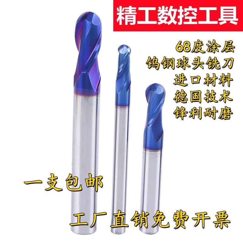 68 degree quenching and hardening special tungsten steel alloy ball end milling cutter stainless steel nano blue coating lengthened R2 3 knives