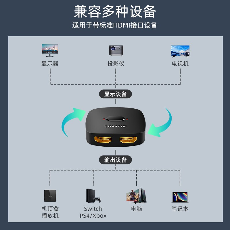 Mountain Zehdmi 10% II switcher Two-in-out converter 4K high-definition film computer display distribution screen device high picture quality line one drag two 2 into 1 out of two-way extension line hdml TV 1068