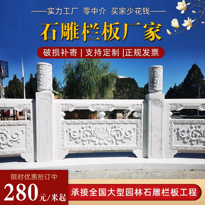 Stone Carving Han White Jade Railing Green Stone Fence Graveyard Riverway Granite Rock Carved Bridge Guard Rail Outdoor board Ascending Flags