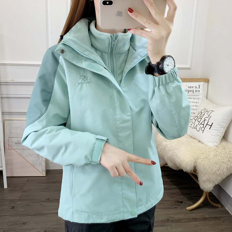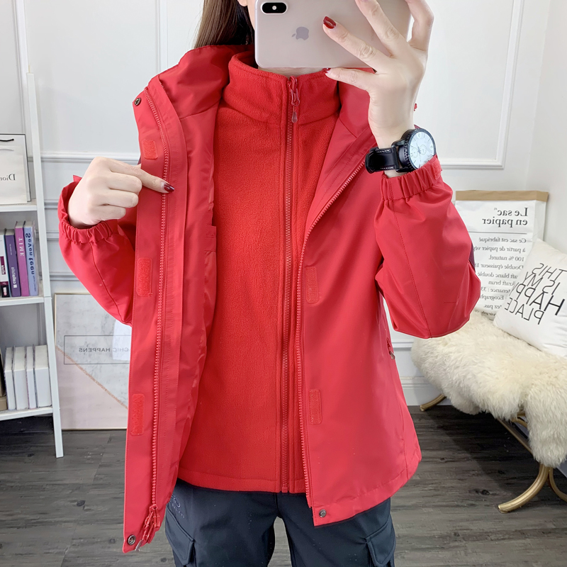 Outdoor jacket women's three-in-one removable two-piece thickened warm hiking waterproof windproof ski suit