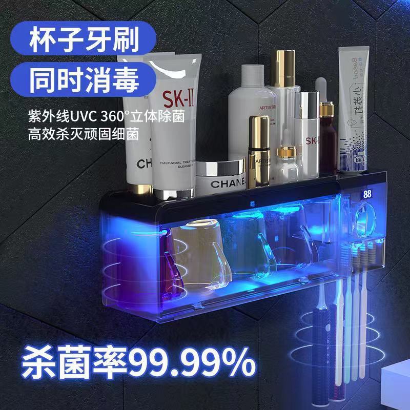 Smart toothbrush sterilizer ultraviolet germicidal wall-mounted dressing room free of punch brush toothpaste cup suit shelve