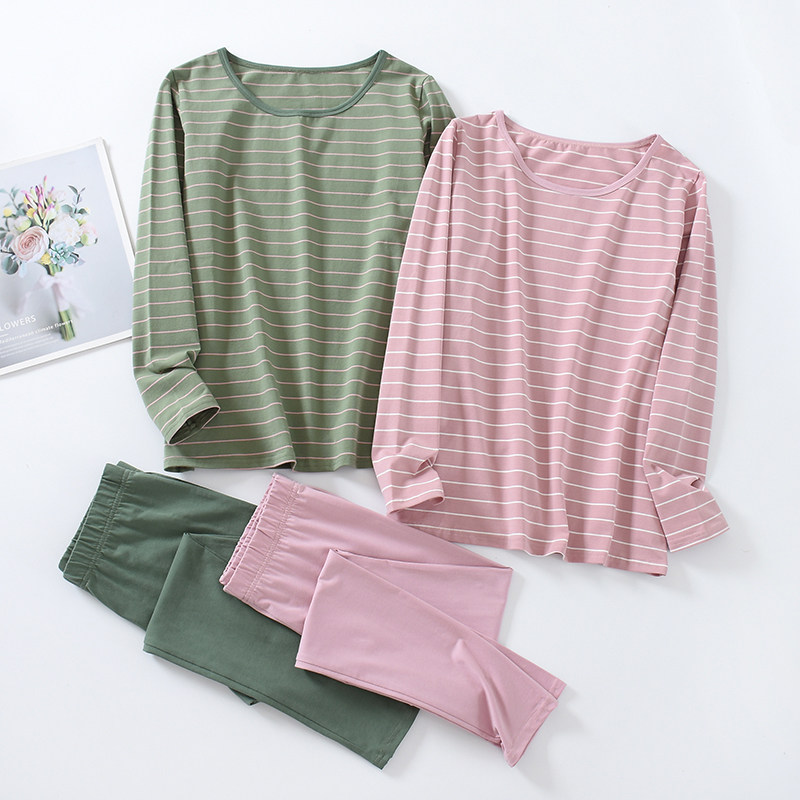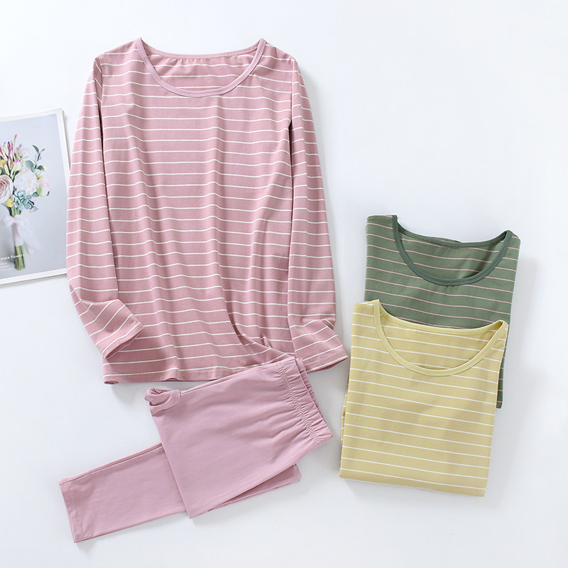 Pure cotton heating dress woman autumn and winter thin elastic repair stripes wearing a whole cotton line autumn sanitary pants suit