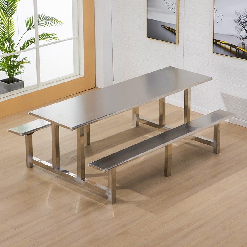 Cafeteria table and chair school students factory 4 people 6 people 8 people combined fast food tables and chairs stainless steel table