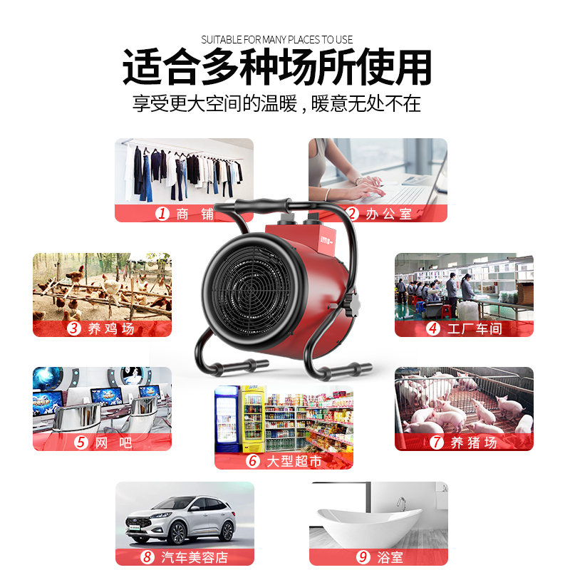 Green One Warm Air Blower Industrial Warmer Home Energy Saving High Power Electric Heat Ventilator Small Steel Gun Electric Heater Large Area