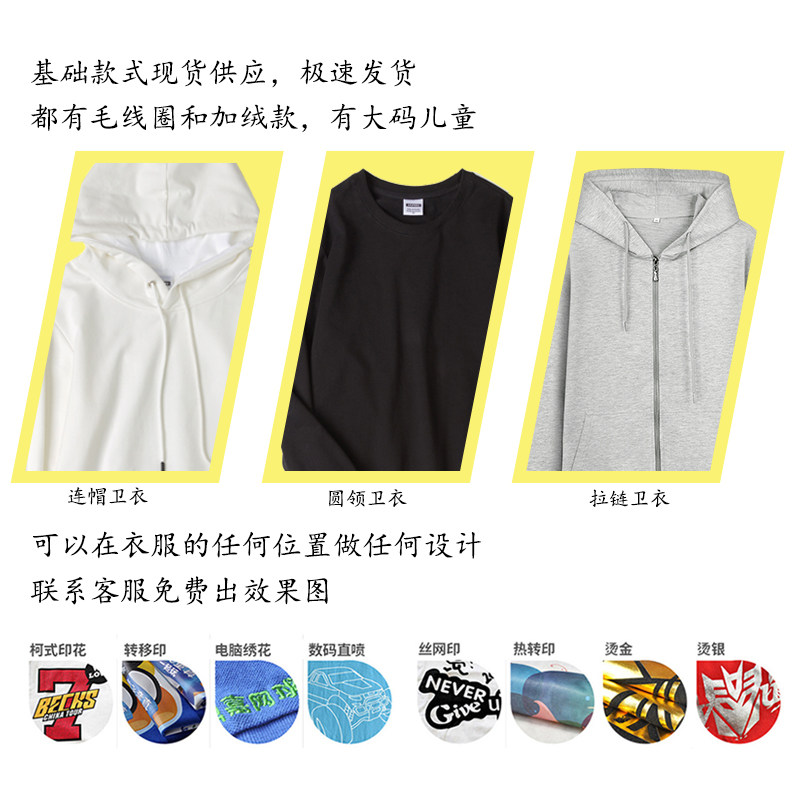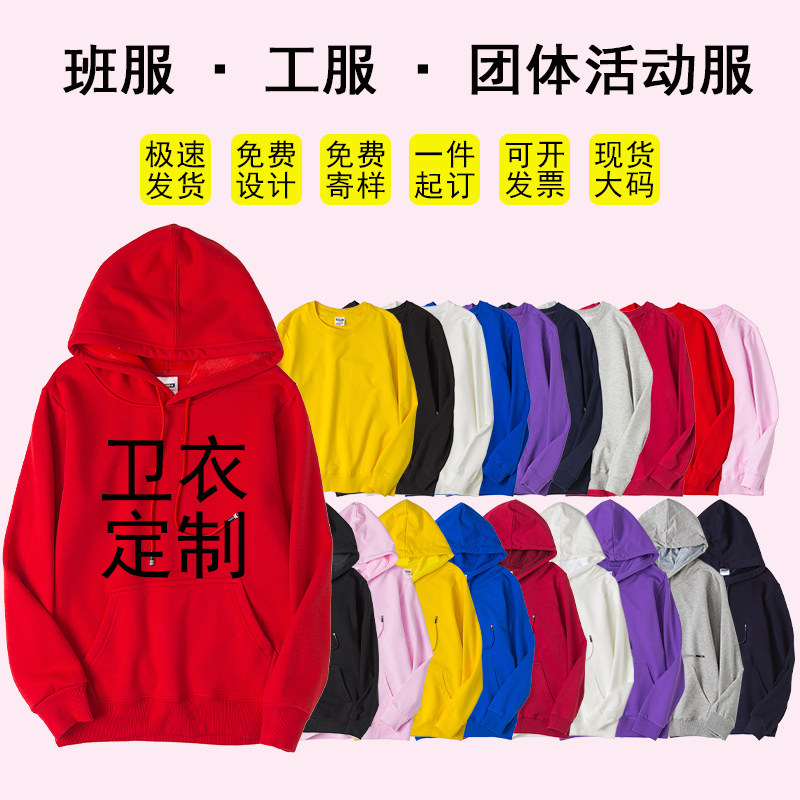 Class clothes custom sweatshirt printing logo hooded plus velvet classmate party long sleeve printing large size loose coat work clothes