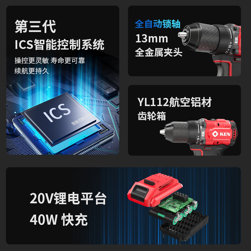KEN Ruiqi 20V brushless industrial grade 7220 rechargeable electric drill lithium electric punch electric screwdriver power tool