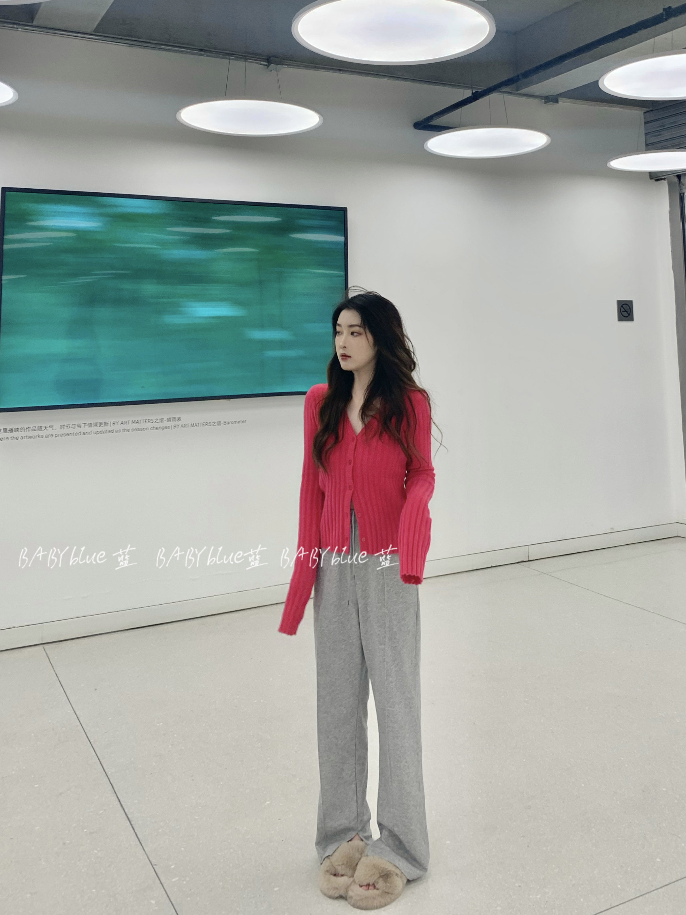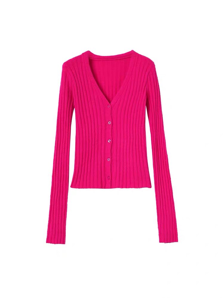 BABYblue (Dragon Fruit) one-row button rose red knitted sweater women's autumn and winter new cardigan long-sleeved top