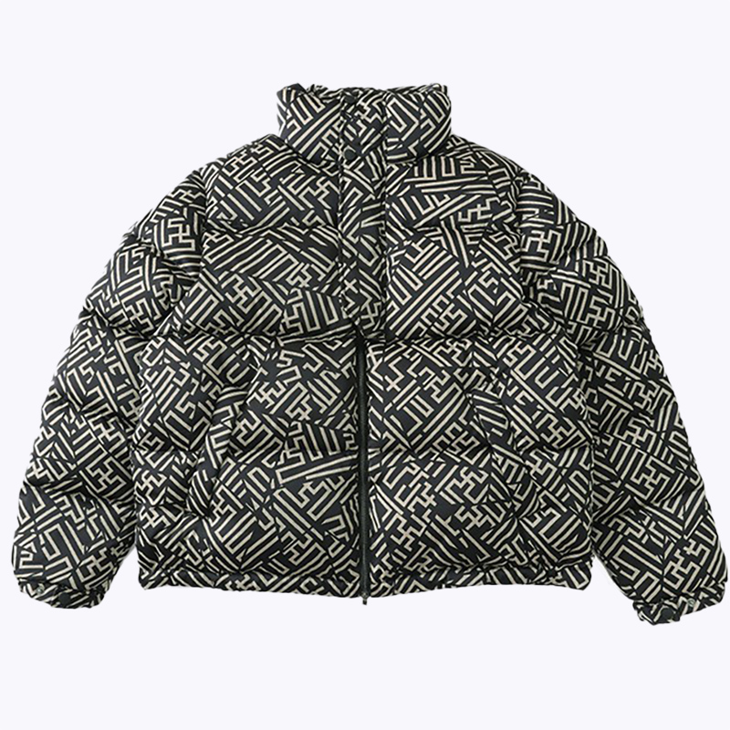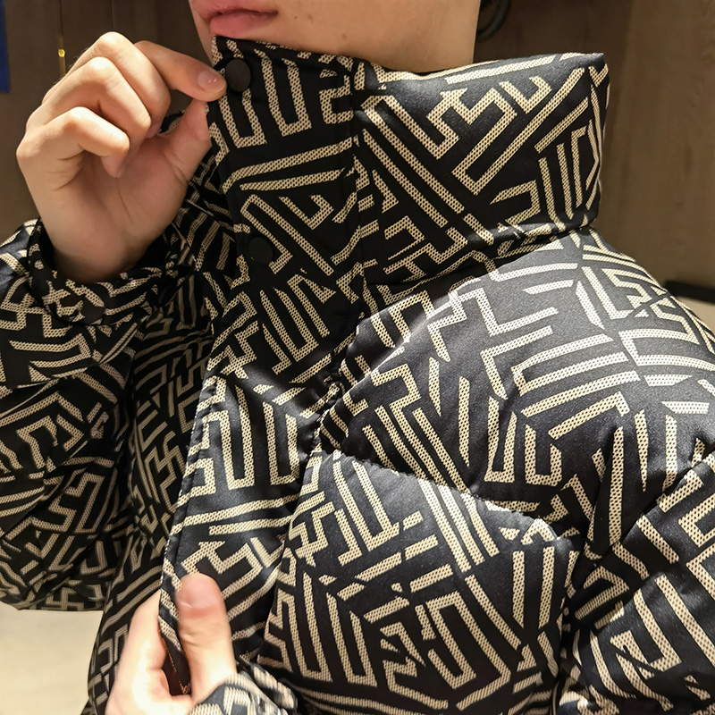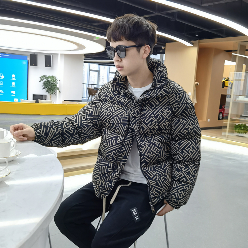 2022 Duckwolf winter new teen high - end plate printed feather jacket male collar short - cut bread suit