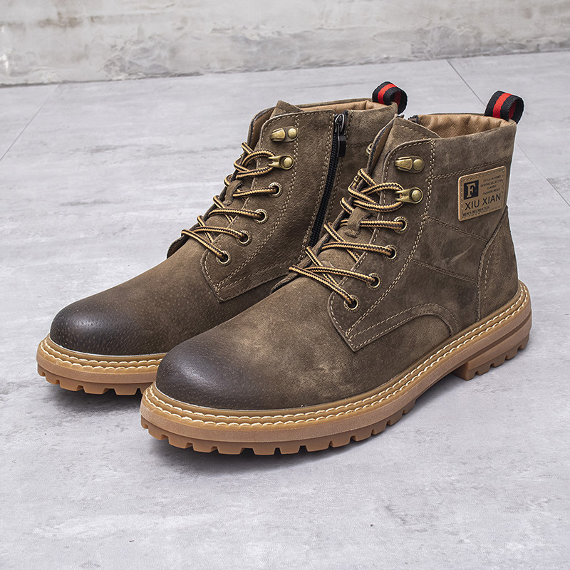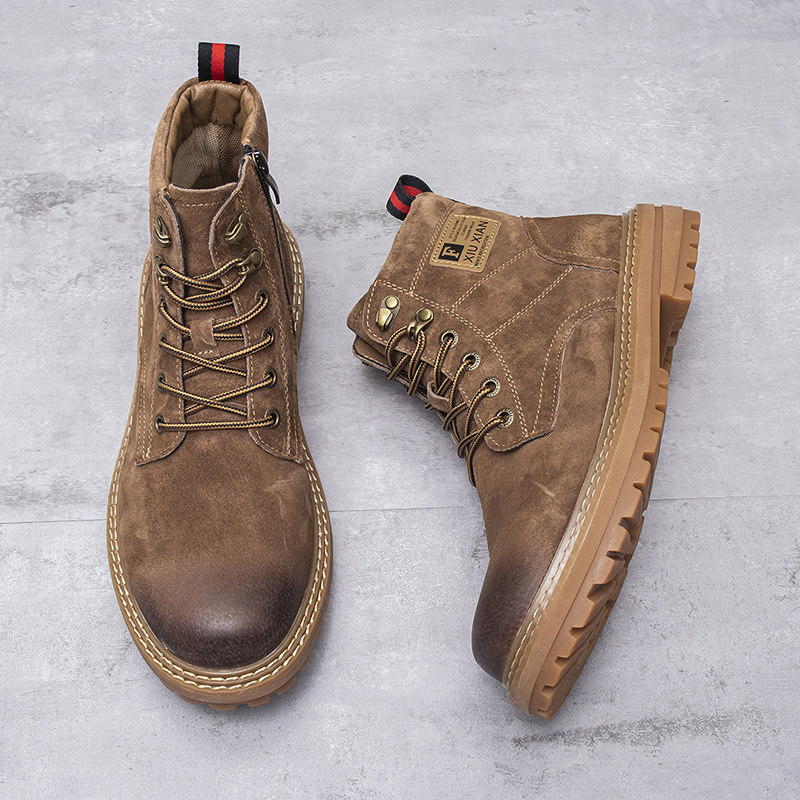 Winter new Martin boots men's high-top leather British tooling boots trendy retro all-match casual mid-top short boots