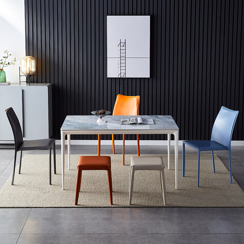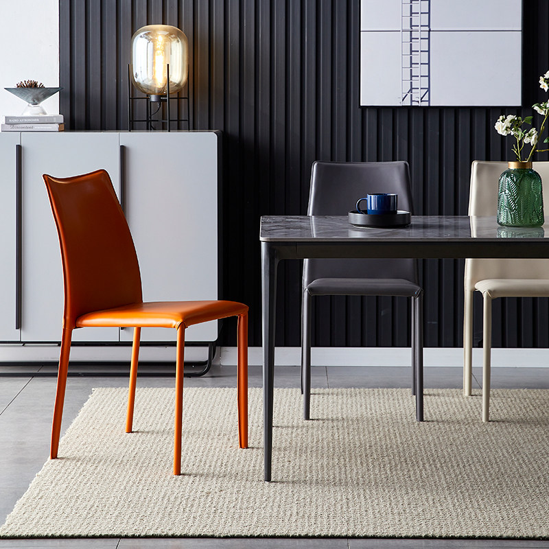Saddle Leather Dining Chair Home Nordic Minimalist Modern Minimalist Dining Room Backrest Bench Light Lavish Hotel Cafe Dining Table And Chairs