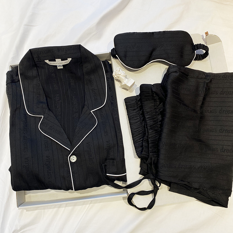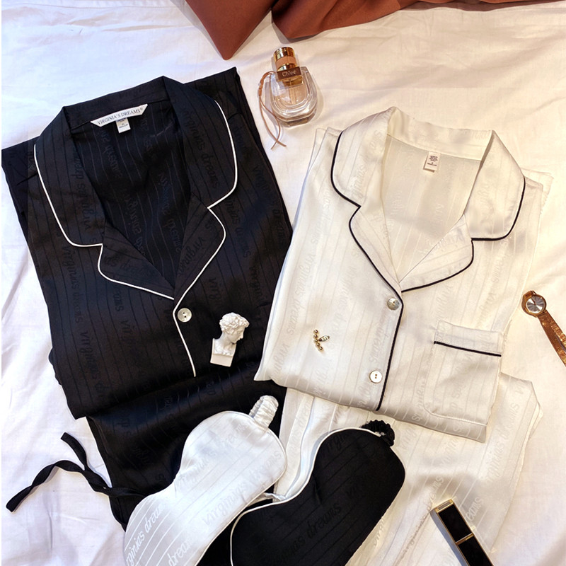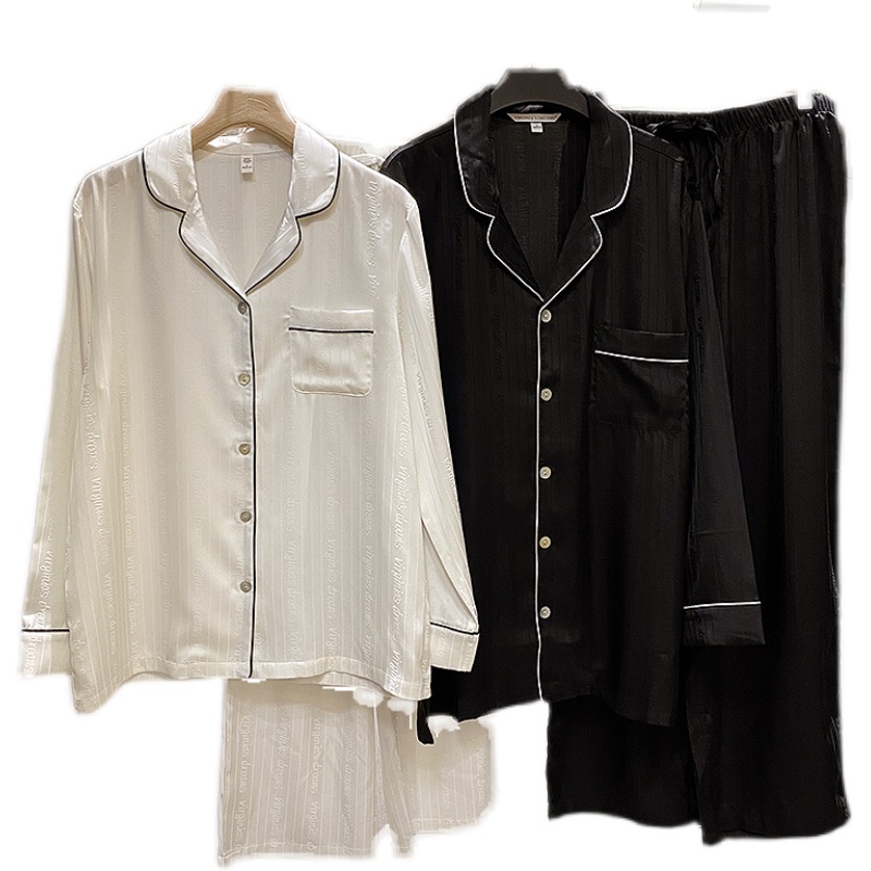Mulberry silk silk pajamas female couple spring and autumn high-quality long-sleeved trousers striped home service suit can be worn outside for men