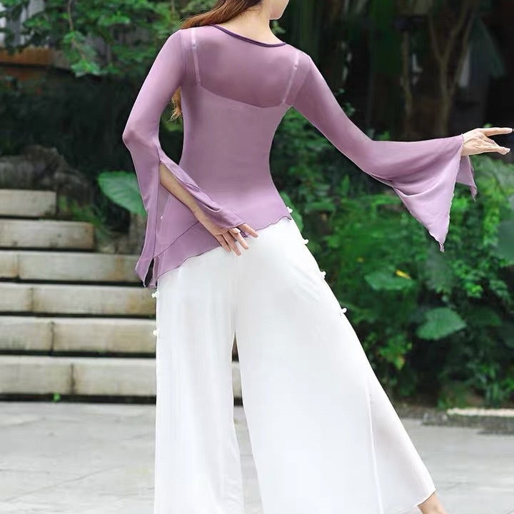 Dance rhyme yoga clothes elegant fairy girl new fashion Chinese national performance practice clothing top dance gauze