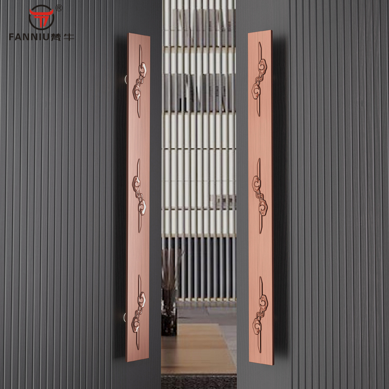 New Chinese double open glass door engraving long handle room push-and-pull wooden door ancient copper handle bag compartment pair open door handle-Taobao