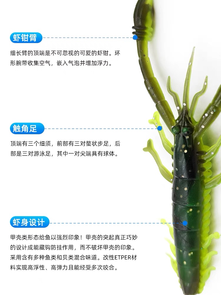 ELITELURE Shrimp High Elasticity Bite-resistant Tear-resistant Fish Smell Ned Fishing Falua Soft Bait