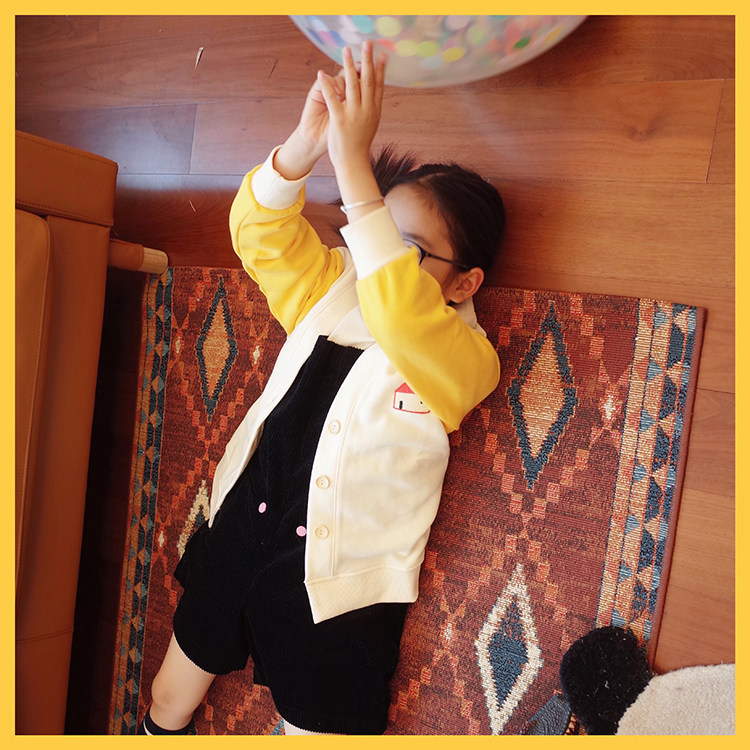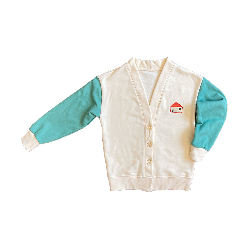 Doll Amy autumn and winter new original original girl's big children's cotton round embroidery cardigan casual color matching plus fleece sweater