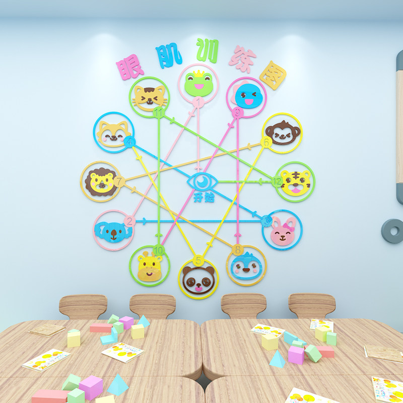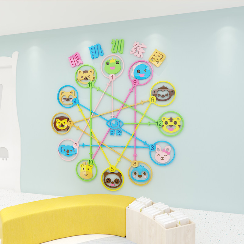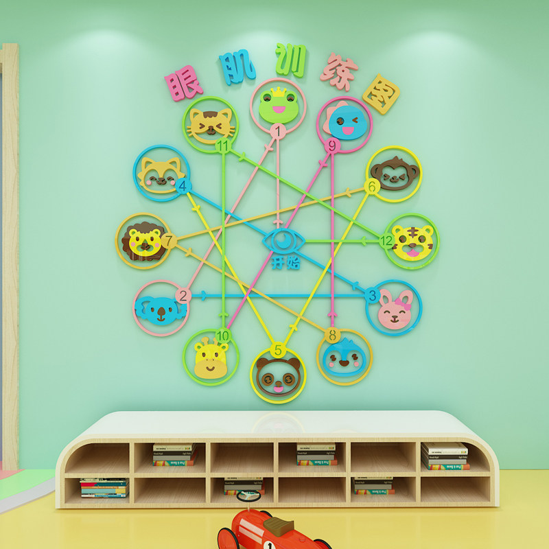 Kindergarten eye protection three-dimensional wall stickers large class vision care training small animal theme ring wall stickers