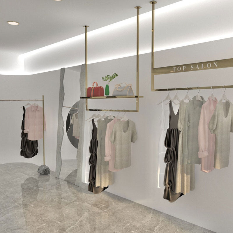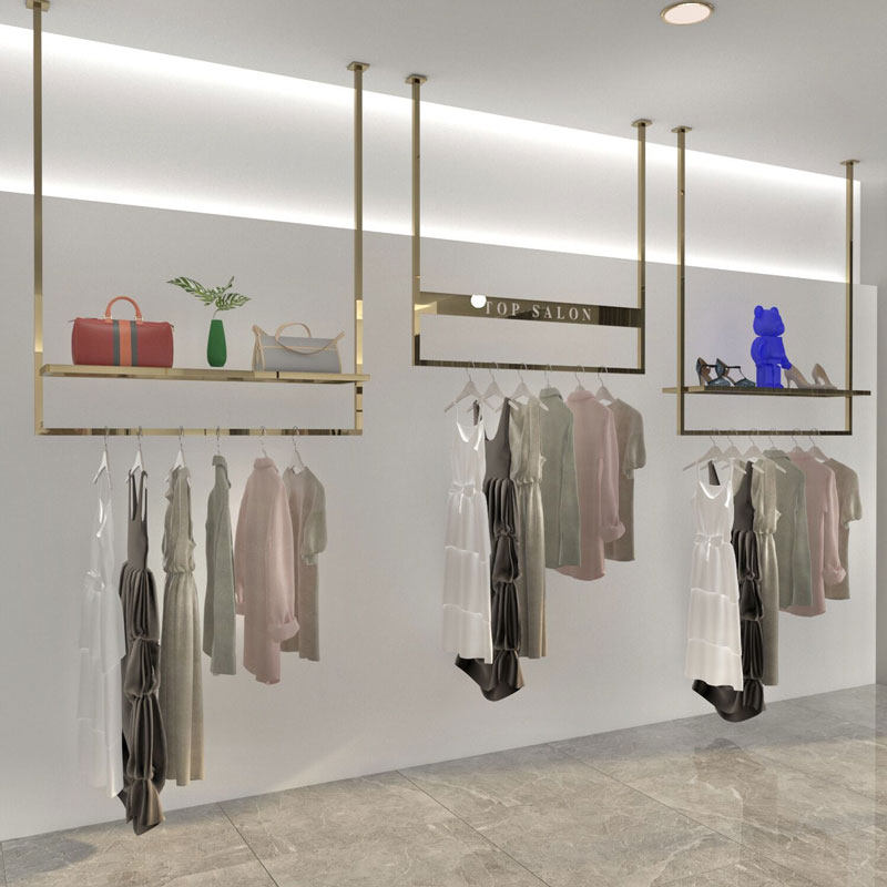 Clothing store display rack women's hanging boom hanging clothes rod stainless steel wedding rack U-shaped hanging custom LOGO