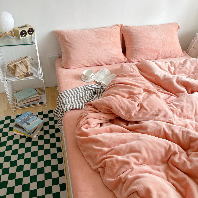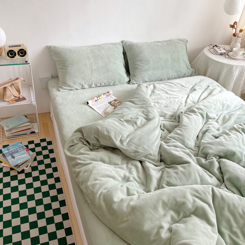 Soft cream yellow~autumn and winter thickened cow bed four pieces of simple pure colored bed beds 2 0