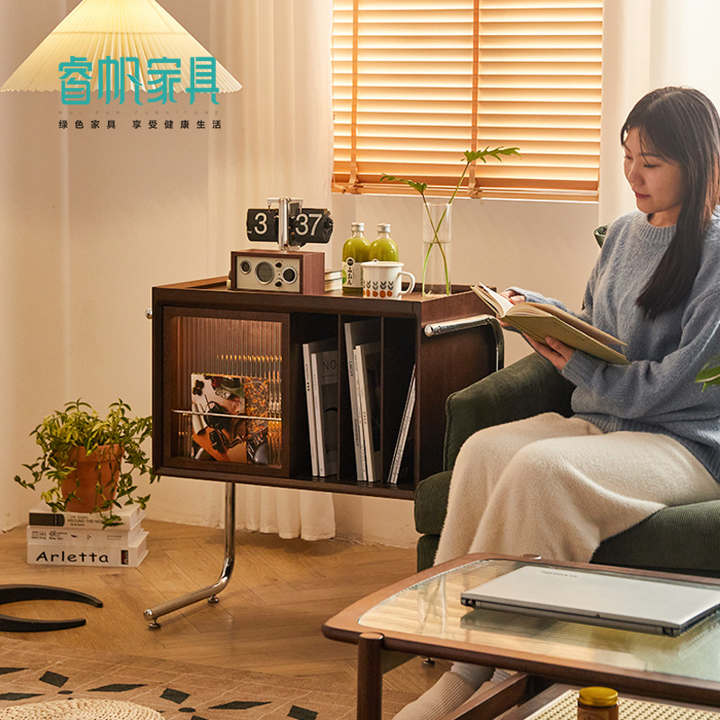 Nordic ins wind solid wood magazine cabinet suspended sofa small side cabinet retro bookcase living room storage cabinet storage cabinet
