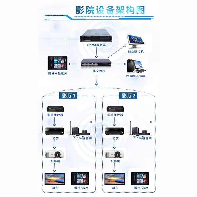Cost-effective movie bar equipment full set of private theater system cash register software movie coffee on-demand system server