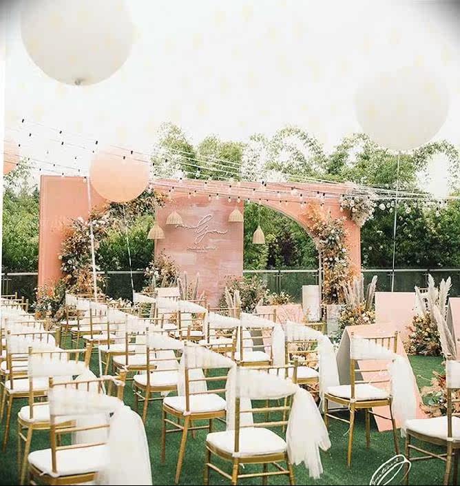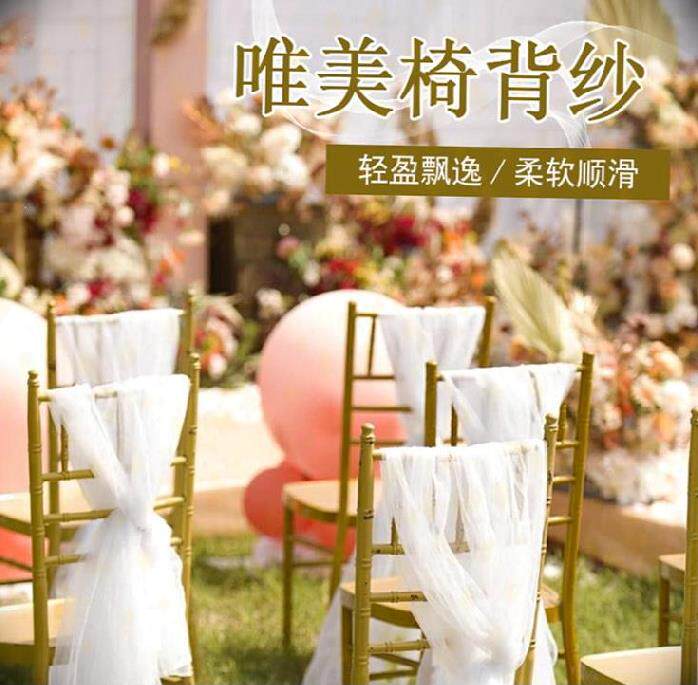 Beautiful white mesh check-in table layout outdoor wedding banquet decoration yarn dress up European-style live stool chair back