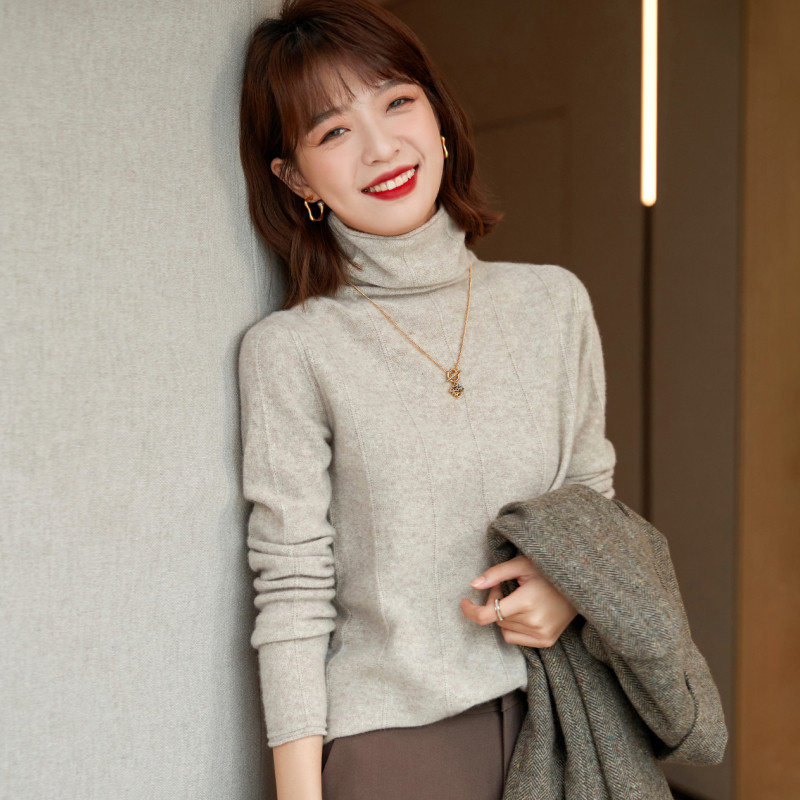 The texture is fine ~ comfortable and warm 2022 Winter new French style high-end cashmere beating bottom high collar sweater