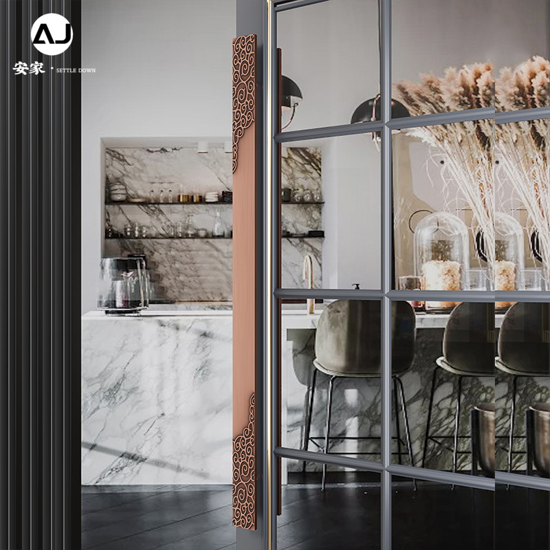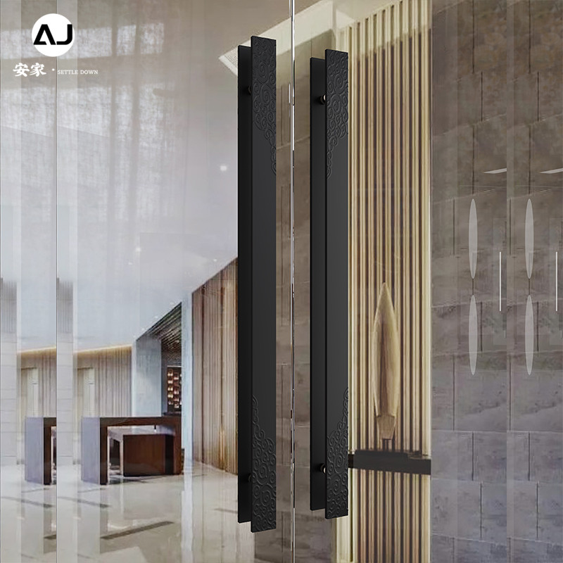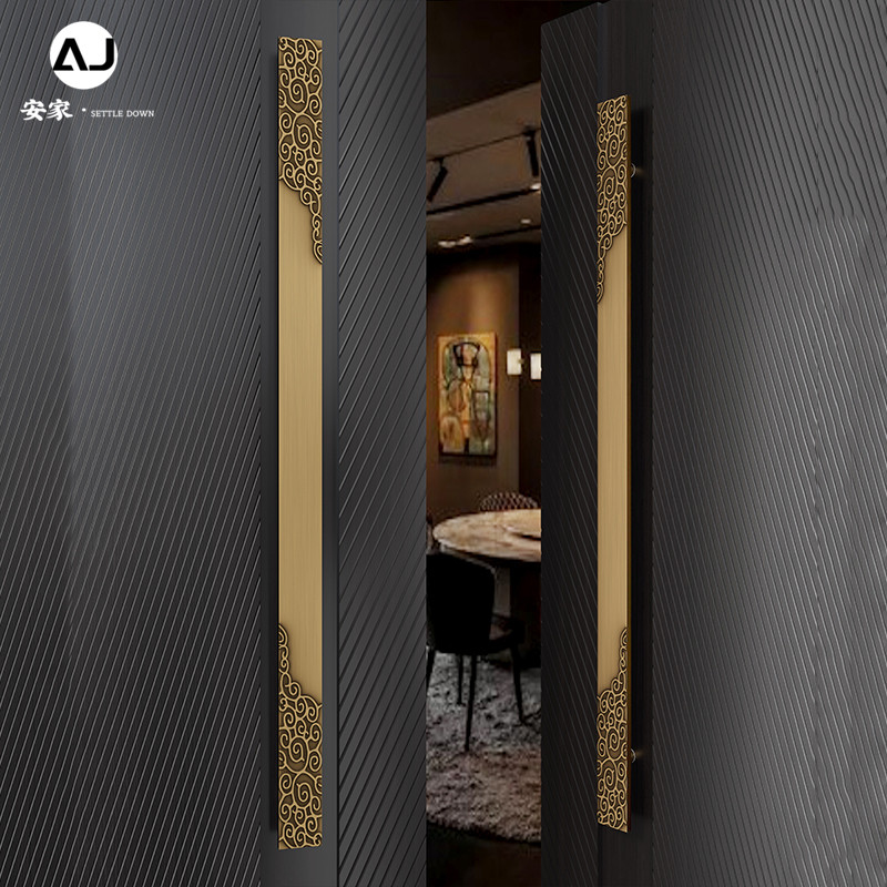 Chinese-style pull door handrail custom aluminum alloy inscription glass door handle antique copper wood door door clothing handle