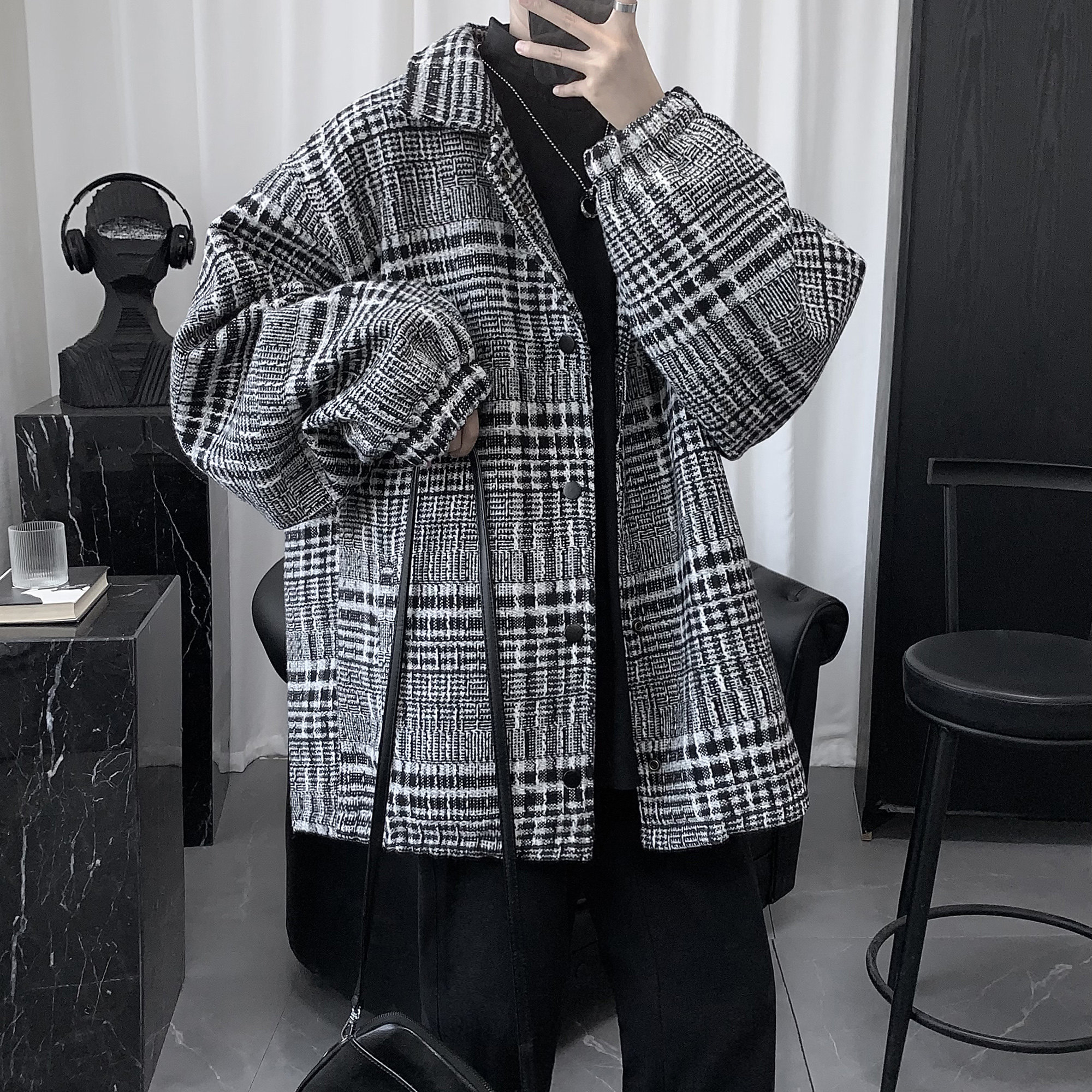 Men's clothing 2022 new spring checkered jacket men's spring and autumn season small scent of light and luxurious and luxurious jacket