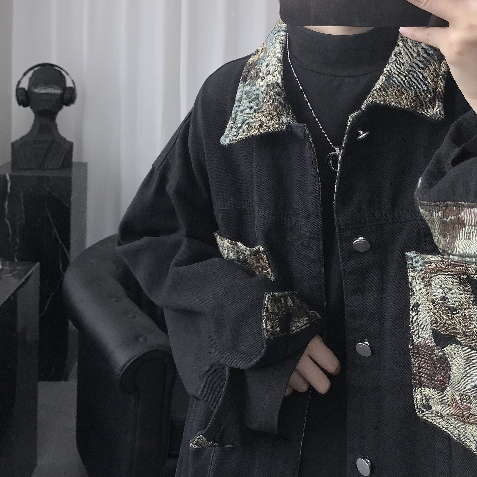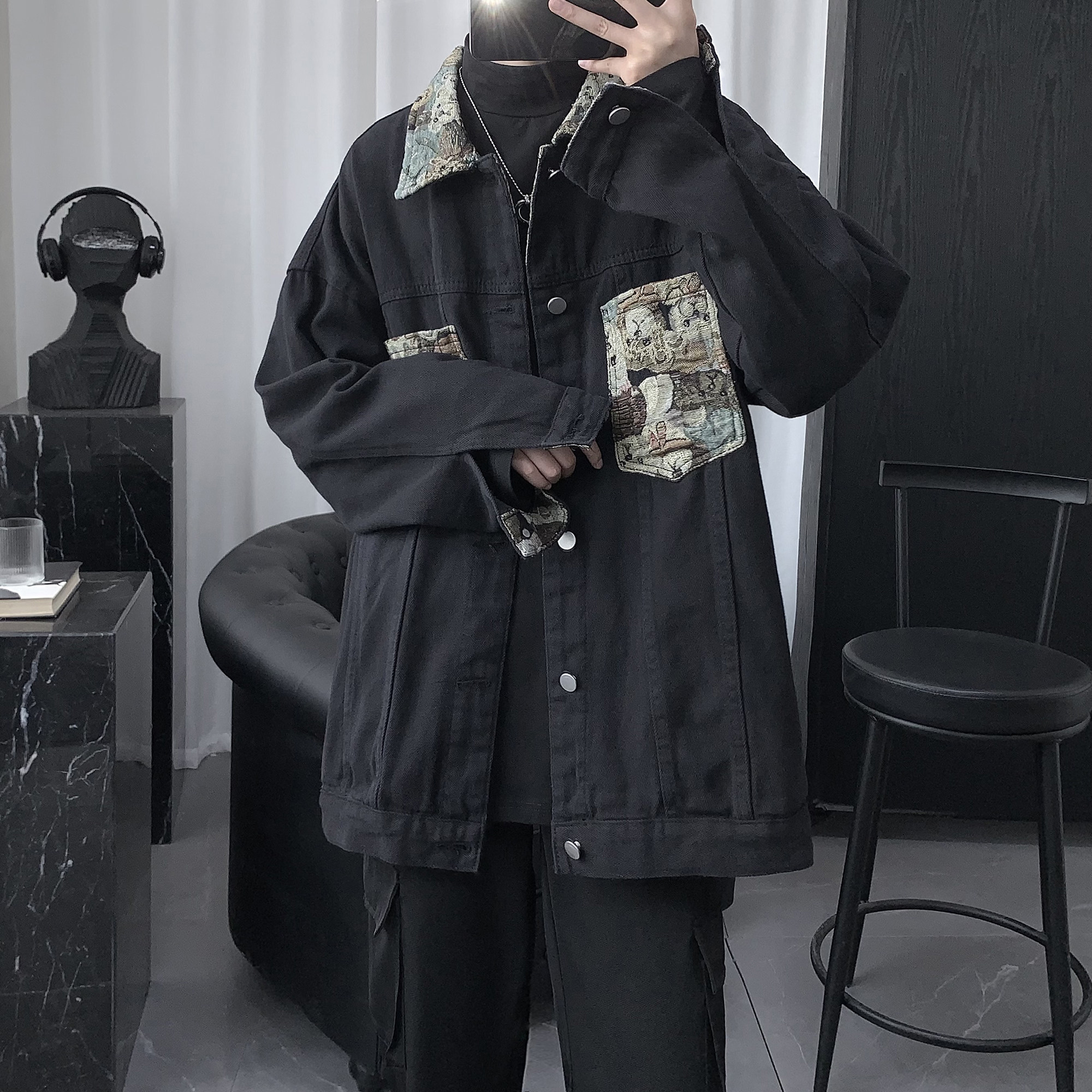 Men's 2022 new spring and autumn jacket men's early spring denim jacket men's design sense niche light luxury ruffian handsome jacket men