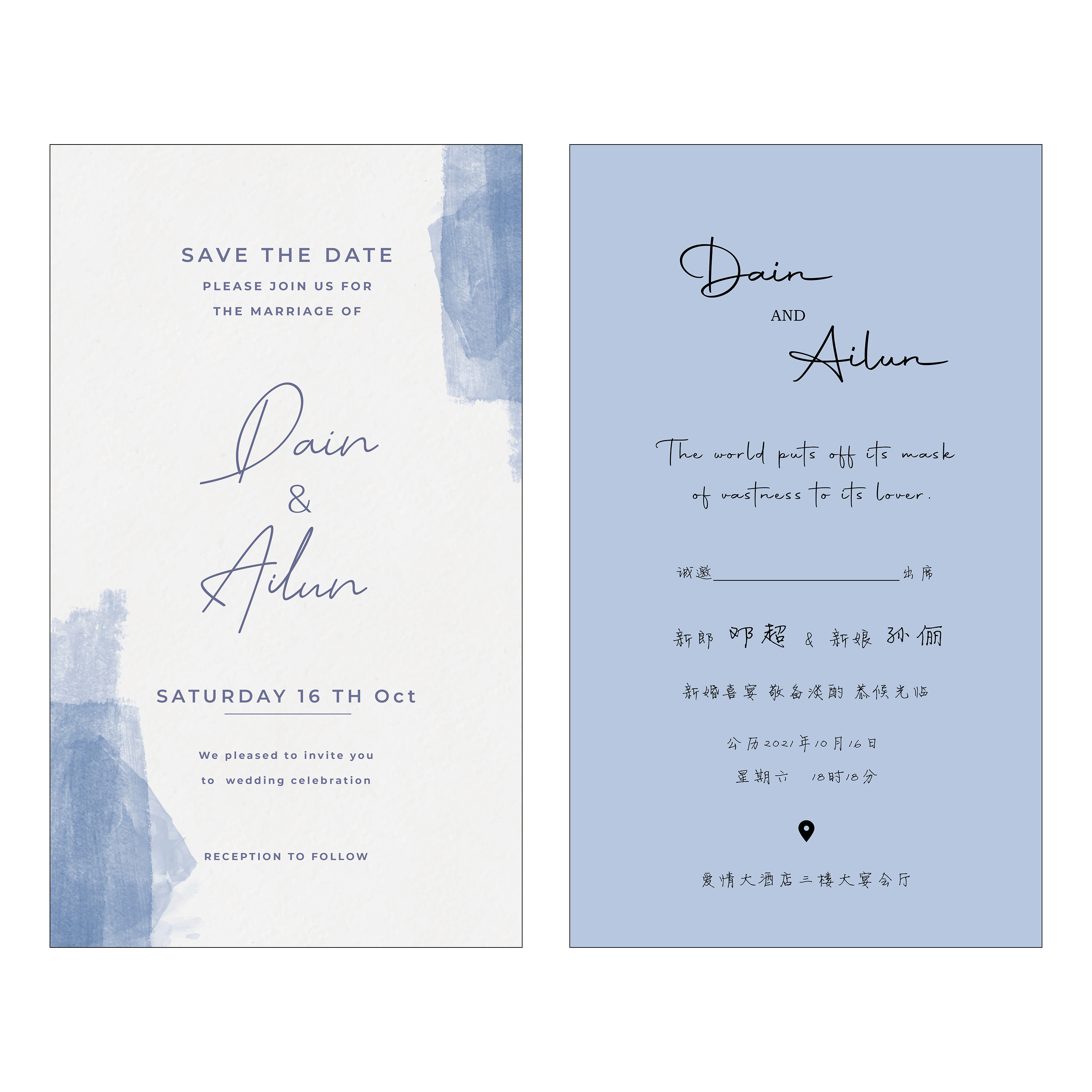 ins Haze Blue Invitation Married 2023 Wedding Customized Creative Personality Valentine Message Hay invitation