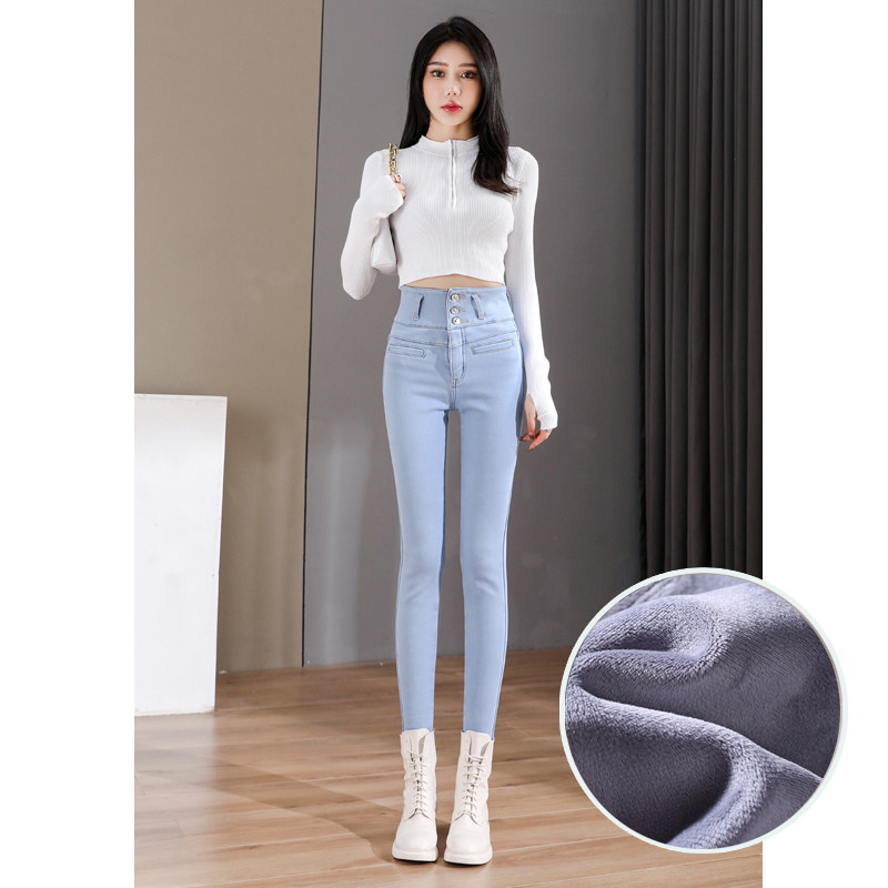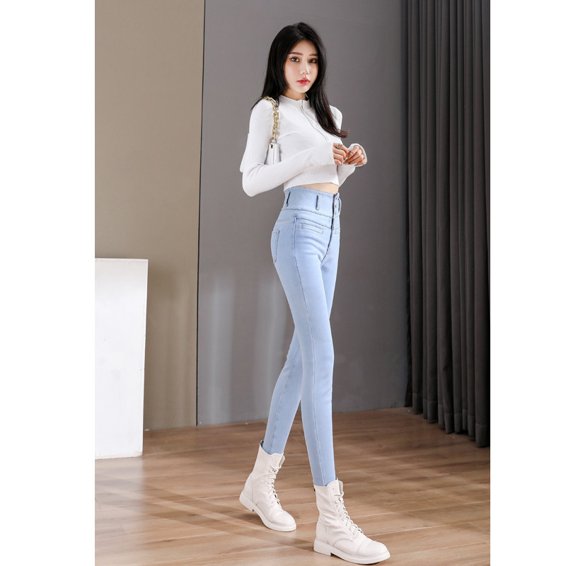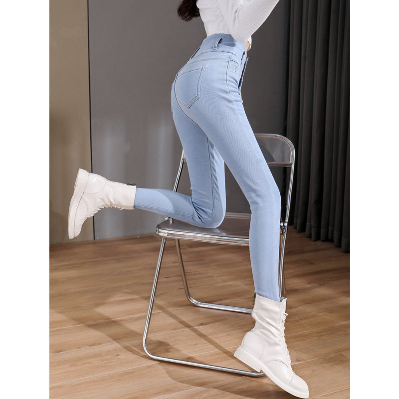 Light Color High Waisted Jeans Women's Pants 2022 Spring New Elastic display High honey Peach Hip Pencil Pants