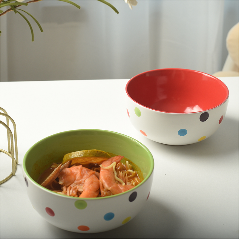 Meilan Ceramics Korean ins storm point bowl cute household rice bowl instant noodle bowl breakfast bowl oatmeal bowl defect